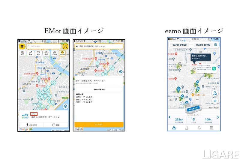 アプリでEVカーシェアリング予約可能に eemo・EMot連携
