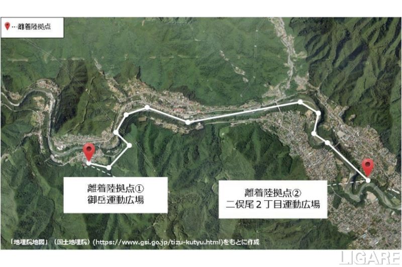 具体的な実証の内容として、地域住民等から、サンドラッグのWebページ、または電話で注文してもらった商品を、ドローンを活用し、最短で当日中に青梅市の二俣尾2丁目運動広場、御岳運動広場まで配送する。