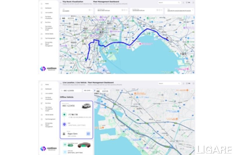 取得した車両データは、IoTローコードノーコードプラットフォーム「Contineo(コンティネオ)」上で開発したシステムにより車両情報や走行履歴をリアルタイムに可視化し、車両管理者が利用するシステムとしての実用性についても検証する。この取組みにより、フリート管理の効率化とスケーラビリティの向上を両立する、新しい車両管理システムの有効性を実証している。