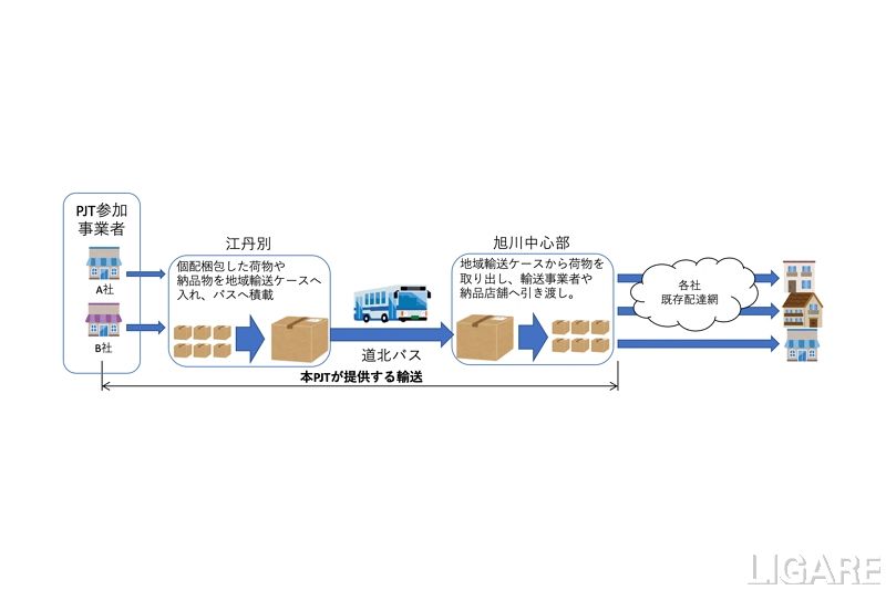 また、今回の旭川地域での貨客混載輸送を実現するために、セイノーHDは、全面的に物流業界内の調整を行い、2022年6月から各事業者が個々に発送を行っていたものを一括して受託する。これにより、発送業務の改善を含めた最適な配送手段でユーザーまで確実に届る仕組みを構築し、今回の貨客混載輸送を組み合わせることで、さらに業務改善を図る。