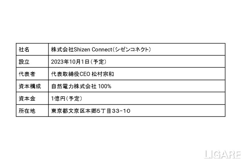 自然電力株式会社(以下、自然電力)は7月25日、100%子会社「株式会社Shizen Connect(シゼンコネクト)」(以下、Shizen Connect)を10月に設立すると発表した。