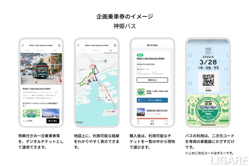 加えて、同実証実験では、「Kobe 1-day loop bus ticket」「Kobe 2-day loop bus ticket」に対し、QRコードで読み取る検札方式を導入する。これにより、現地でのオペレーションや乗車実績を検証し、今後の施策に生かす予定だ。対象企画券はRYDE社提供の「RYDE PASS」上で事前に購入できる。