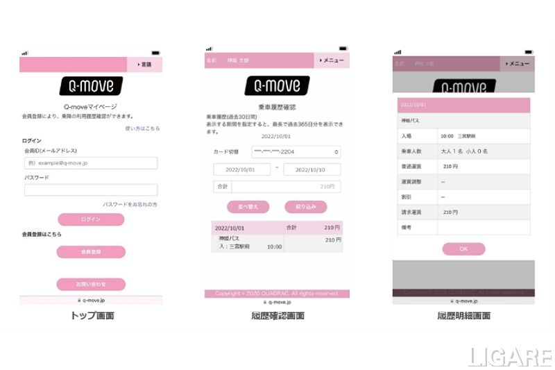 さらに、同実証実験では、一定額利用を超えると乗車運賃が割引になる「上限運賃適用サービス」の効果検証も行う。同サービスは、日単位(月単位も可能)の利用金額に上限を設定し、上限に達した場合はそれ以上の支払いが不要となる仕組みだ。ユーザー自身の利用履歴や上限運賃の適用の確認は、QUADRAC社の「Q-move」サイトにアクセスすることで閲覧できる。