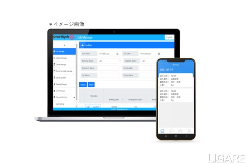 SmartRydeが構築した予約配車システムは、広島大学大学院先進理工系科学研究科 林田智弘准教授との共同研究で構築した配車の最適化アルゴリズムを活用している。ひろでんモビリティサービスは、同システムを導入することで、ユーザーのスマートフォン等での予約からハイヤー会社での配車、運行までの流れをスムーズにしている。ひろでんモビリティサービスは、大型ワンボックスタイプで広いトランクルームをそなえた車両を有している。これにより、海外からのユーザーをはじめとしたSmartRydeのWebサイトからの予約への対応等、空港を利用するユーザーのプライベートな移動に対応するという。