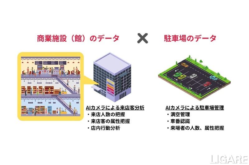 今回の取り組みでは、これまで分断されていた「駐車場のデータ」と「付帯施設のデータ」を掛け合わせる。これにより、マーケティングに活用できる駐車場機能高度化ソリューションの共同企画・検討を推進する。具体的には、商業施設事業者、駐車場事業者等向け汎用AIアプリ(在否検知・車番認識・車両の向き・人数カウント・属性分析等を実現)の企画、ai cast認識モジュールを活用した駐車場向けデバイス開発の検討を計画。ほかにも、駐車場および付帯施設のデータ連携による両社間での共同提案モデルの検討を計画しているという。