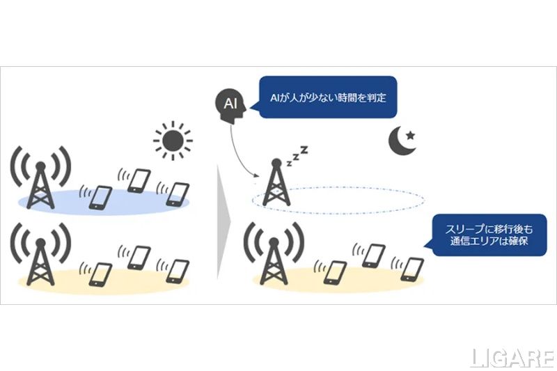 自家発電型基地局の特長は、太陽光と風力によるハイブリッド対応で、天候や時間帯に左右されにくい持続的な発電を実現できる点だ。さらに、蓄電残量が規定値を下回ると自動的に商用電源に切り替わる仕組みでスムーズな運用が可能であり、停電時にも蓄電池により一定時間の自立稼働できる。電力が一時的に枯渇した場合にも、太陽光や風力により自動的に再充電・再稼働が可能だ。レンズ状のカバー(ディフューザー)を装備したユニークな小型風車により、離島や山間部など風況が不安定な地域でも設置できるという。今回の実証は、千葉県市原市で実施するとのことだ。一方、AIを活用した基地局のスリープを動的に制御するシステムの開発・導入は、通信トラフィックが少ない時間帯に一部のセルを自動でスリープ(低消費電力状態)へ移行させ、通信品質を維持しながら消費電力の削減を実現するというものだ。AIを活用することで、スリープ可否を判断する際の閾値を動的に自動で設定する。同社は、一部の基地局を対象にこのシステムの導入を開始したという。