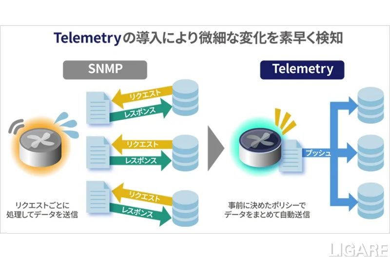 ※2 ネットワーク機器からデータを自動的に送信する仕組み。プッシュ型で、リアルタイムに近い頻度で細部の状態を継続的に把握できる。