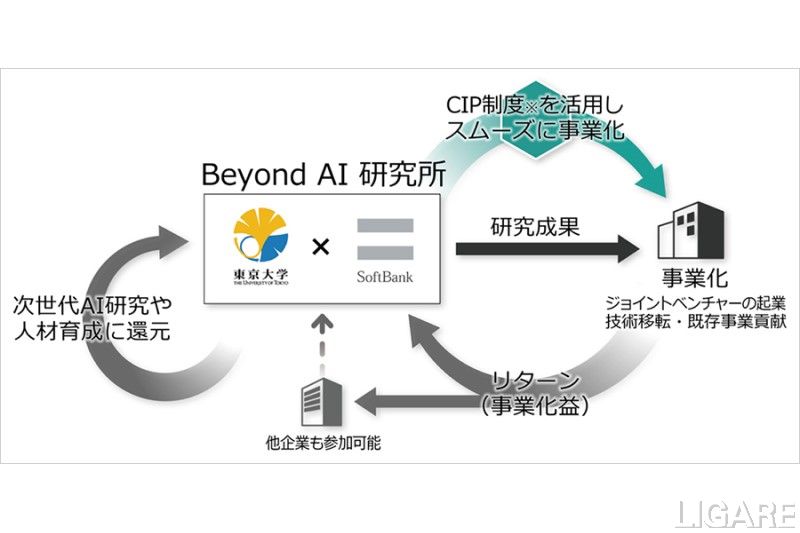 『Beyond AI研究所』は、東京大学と海外の有力大学の世界最高レベルの研究者を擁した最先端のAI研究機関になることを目的として設立する。この研究所では、AIの基盤技術研究やその他の学術領域との融合を目指す基礎研究領域と、さまざまな社会課題・産業課題へのAIの活用を目的とする応用研究領域の二つの領域で研究を行う。研究所内では各研究領域の連携を密に行うとともに、研究成果の事業化にあたっては、大学と企業とのジョイントベンチャーの迅速な設立を可能にするために経済産業省が新たに策定したCIP制度(Collaborative Innovation Partnership制度)※を積極的に活用する予定だ。※ 経済産業省が従来の制度を刷新し、新たに普及させる研究開発ビークルで、企業と大学がパートナーとなってスピード感をもって立ち上げ、成果が出ればジョイントベンチャーとして株式会社化して事業化を行うことができる制度。