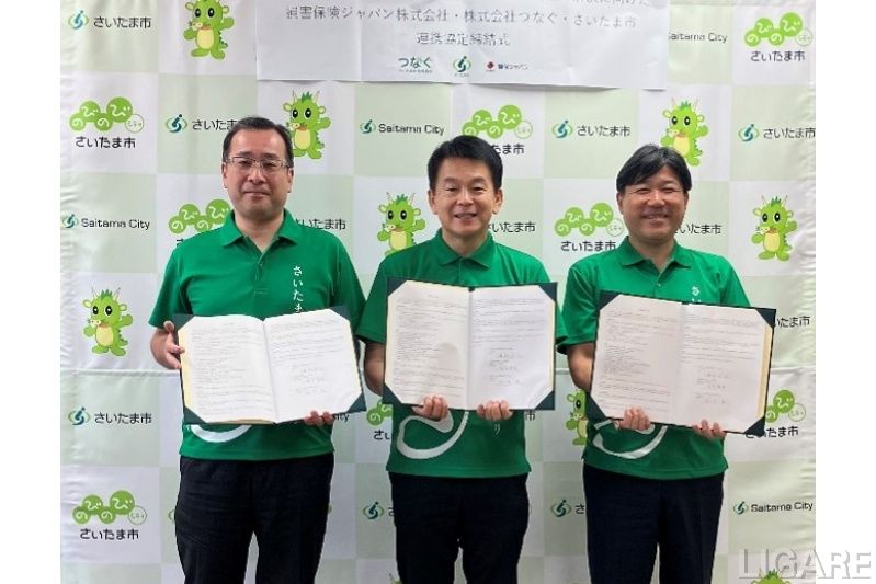 損害保険ジャパン(以下、損保ジャパン)、さいたま市および、つなぐ社は、さいたま市における地域課題の解決、地域社会および企業価値の成長・発展に繋げていくことを目的とした連携協定締結を発表した。