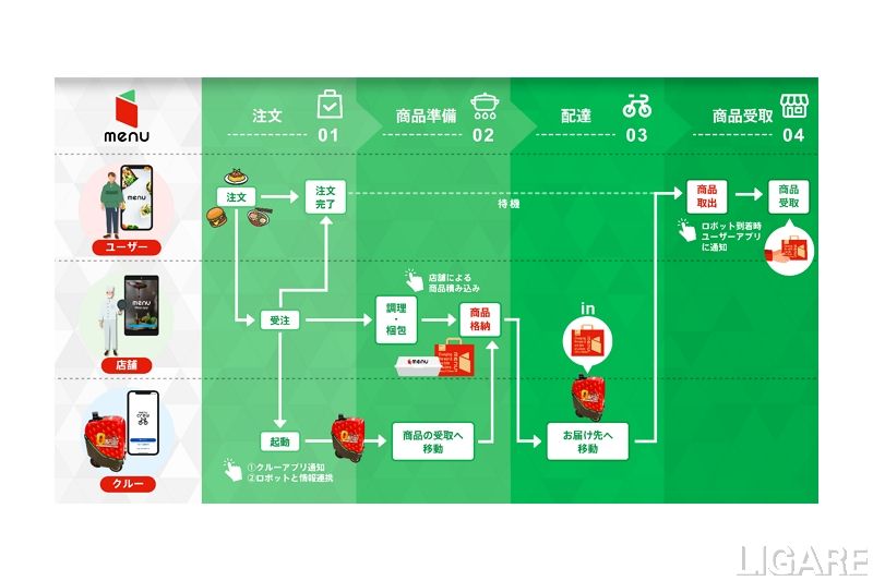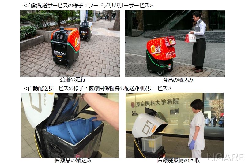 プロジェクト内容としては、「配送ロボットを使ったフードデリバリーサービス」と「配送ロボットを使った医療関係物資の配送/回収サービス」を提供する。「配送ロボットを使ったフードデリバリーサービス」では、配達員の代わりに配送ロボットが食品の配送。配達員と共に自動配送ロボットがどう生活者に受け入れられるのか、人手が足りなくなる雨天時や夜間での配送ロボットの適応可能性などを検証する。同時に、保温機能など配送ロボットならではの配送品質向上にも着眼する。実施期間は、1月23日~2月10日の予定だ。
