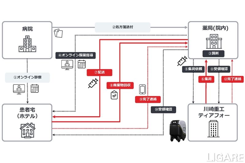 具体的には、往路で血友病患者向けに処方箋医薬品を配送し、復路で医療廃棄物の回収を1月31日に行った。これにより「非接触」、「荷物のトレーサビリティ」、「重量物の配送」といった利点の検証を実施する。同時に、患者のアドヒアランス(治療の継続性)向上や医薬品の製造、流通、サービスの観点から、患者に医薬品を安全かつ効率的に届けるための知見を収集した。