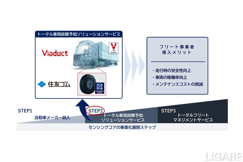 住友ゴム工業株式会社(以下、住友ゴム)は8月7日、AIを活用した車両故障予知ソリューションサービス提供の米国ベンチャー企業Viaduct Inc.(以下、バイアダクト社)との共同実証実験開始を発表した。