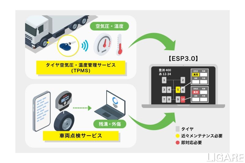 住友ゴム工業株式会社(以下、住友ゴム)は3月3日、トラックのタイヤ状態を一元管理できるアプリケーション「ESP3.0(イーエスピーサンテンゼロ)」の提供開始を発表した。