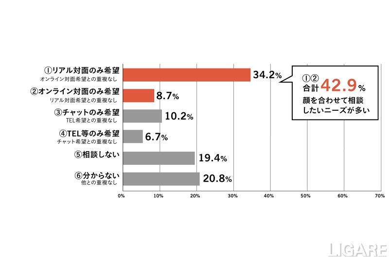 両社は実証実験の開始にあたって、全国の20代〜50代の男女1054名を対象に「コロナ禍における保険相談に関するアンケート」を実施した。その結果、コロナ禍における新しい生活様式においても、約3割の人がリアルでのコミュニケーションを、またオンラインも含めると約4割の人が顔を合わせたコミュニケーションを希望していることが判明した。