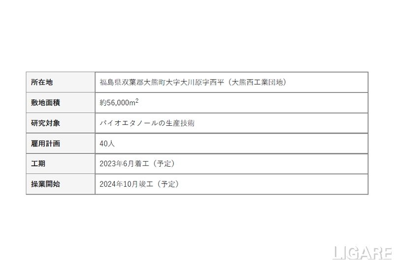 具体的には、カーボンニュートラルの観点から、植物を原料としたバイオエタノールの生産研究設備を建設し、その副生成物であるCO2の活用方法も含めた低炭素化技術の研究を行う。
