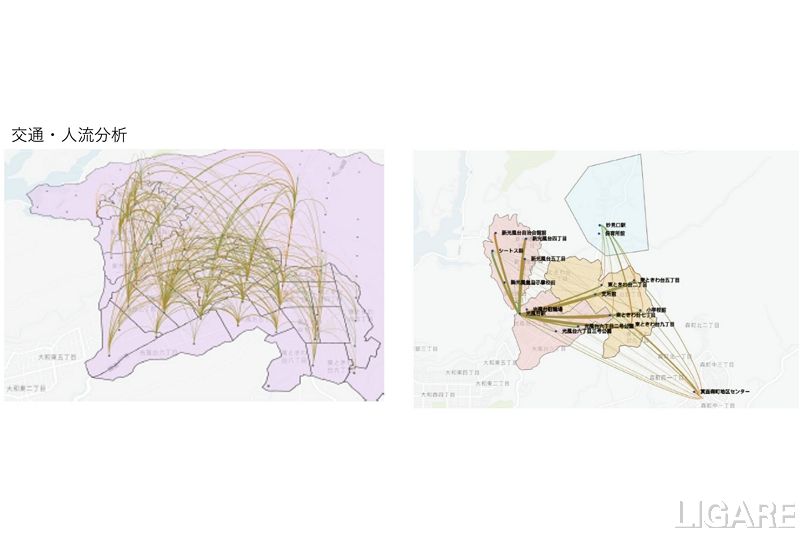 SWATは、豊能町の人口動態、店舗・施設データ、路線バスとデマンドタクシーの運行データを基に、既存の公共交通の分析を行い、現状認識を行った上で、人流データを活用して、実際の住民の移動を可視化・分析した。そして、人流データから見てとれる移動需要を基に、オンデマンド交通導入シミュレーションを繰り返し、最適な車両台数とサービスレベルを提案している。