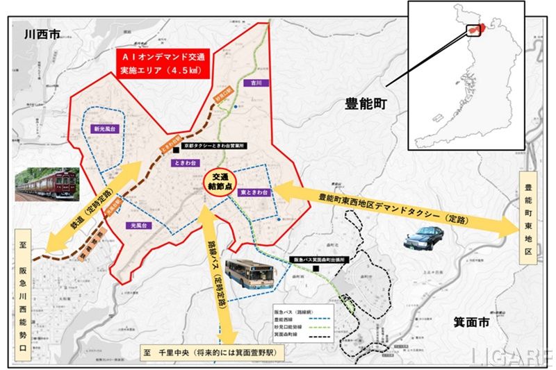 豊能町、阪急バス、および京都タクシーの3者は、2023年2月1日~2月28日に無償での実証運行を実施した。今回の実証では、無償での実証運行で利用者から得た意見や運行課題などを踏まえて行うという。