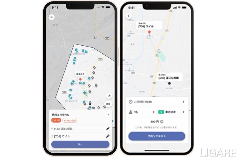 同社は、通常の即時予約システムにくわえて、指定した時刻に予約を自動的に締め切るという新形態のシステムを開発した。今回の実証運行を行う野田川地域と桑飼地域で、それぞれの地域特性に応じて、最適な締切時刻を設定した予約システムを導入するという。