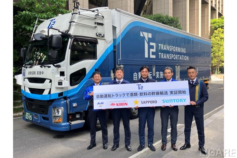 T2ら、自動運転トラック幹線輸送を酒類・飲料物流子会社4社と実証