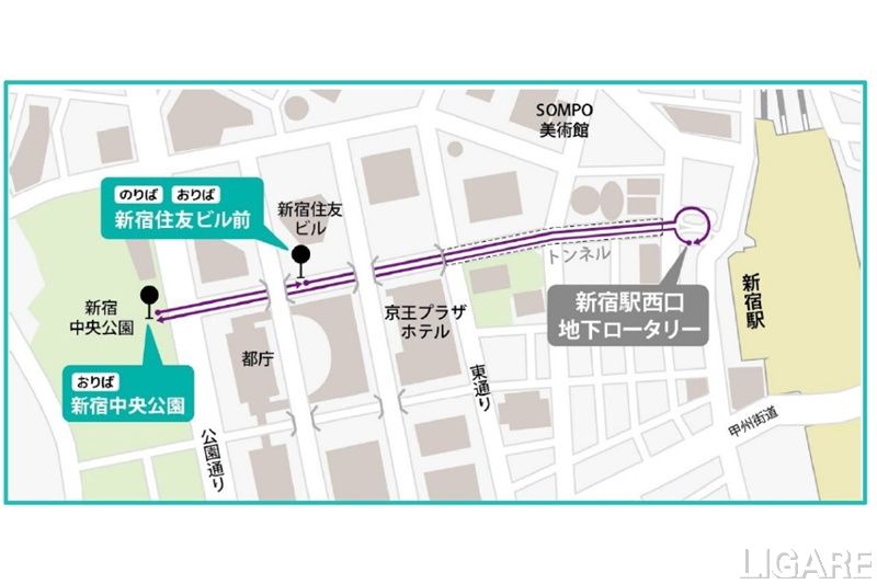一方、「街の活性化のための取り組み」では、新宿中央公園など、西新宿エリア内のイベント開催に合わせた運行を実施する。ほかにも、SOMPO美術館など、西新宿エリア内にある施設との連携企画の実施する予定だ。子どもたちが描く絵画を車体にラッピングも実施するという。