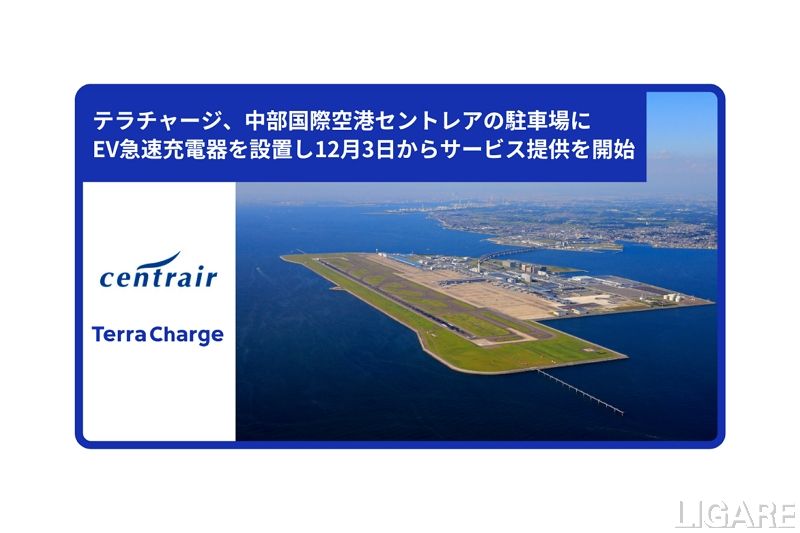 Terra Charge株式会社(以下、テラチャージ)は11月20日、中部国際空港株式会社が運営する中部国際空港セントレアの第3駐車場(P3)へEV急速充電器2口(2基)の設置と、2024年12月3日からサービス提供を発表した。