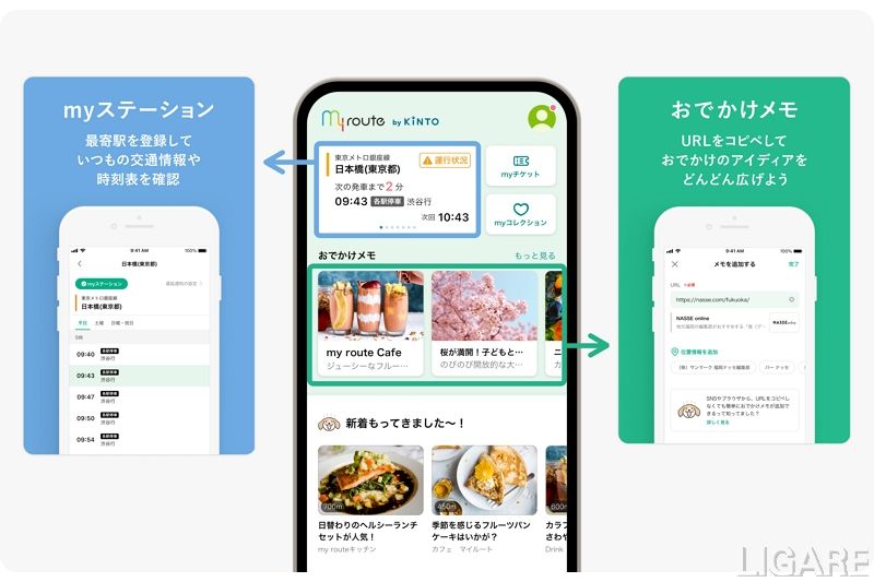 また、「おでかけメモ」は、WebサイトやSNS、雑誌で目にする「行ってみたいな」と思った場所やイベントの情報を登録し、自分だけのお気に入りをまとめておける機能だ。ユーザー一人一人の「行きたい」を見える化して、次回の外出検討をサポートする。一方、「myステーション」は、毎日利用する最寄りの駅の交通の情報を一目で確認できる機能だ。遅延情報、時刻表やバスの位置(対応路線のみ)をワンタップで確認できる。