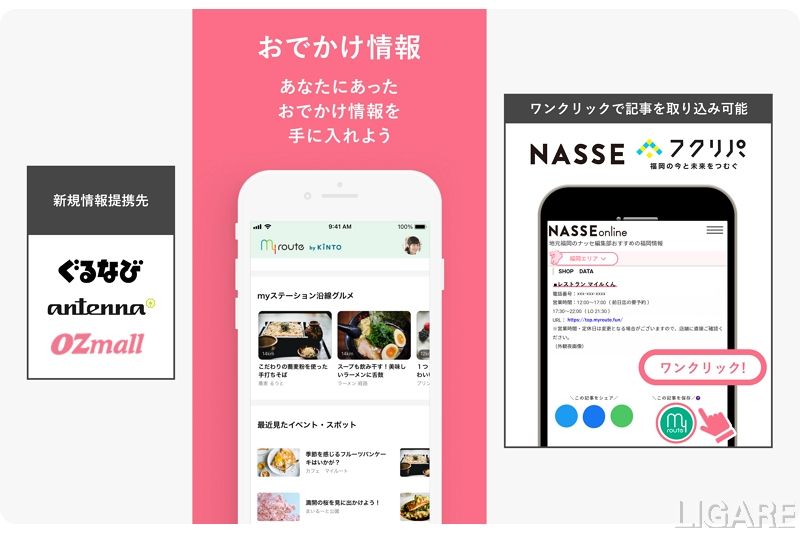 ほかにも、福岡の情報誌・情報サイトであるNASSE、フクリパとは、「my routeにメモ」ボタンを配置し、ワンクリックで、情報がmy routeに取り込まれるようになる。提携先は、今後拡大する予定だ。
