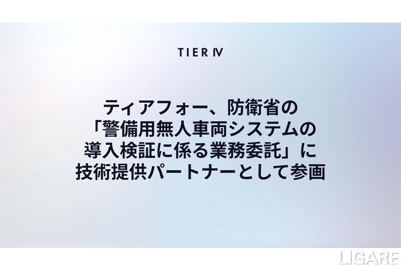 株式会社ティアフォーは2026年2月26日、防衛省が実施する「警備用無人車両システムの導入検証に係る業務委託」において、技術提供パートナーとして参画することを発表した。本事業は、全国の陸上自衛隊駐屯地・分屯地における警備業務の高度化および効率化を目的としており、自律走行機能を備えた警備用無人車両(UGV)の実用性を検証するものである。