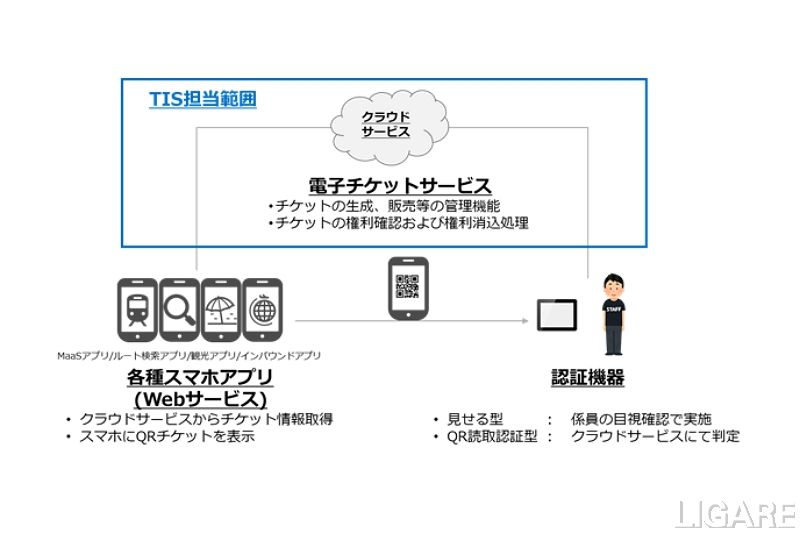なお、TISは、ジョルダン株式会社が運営する「乗換案内アプリ」内の電子チケットのクラウドサービス連携を拡大する。さらに、株式会社小田原機器が提供するSELF端末(認証機器)に電子チケットのQRコードをかざすだけで認証が完了する連携も進めているという。
