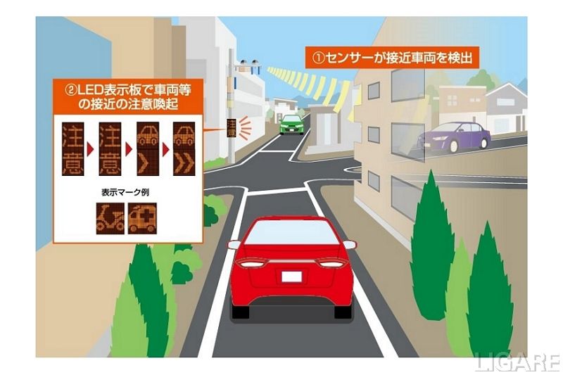 具体的な取り組みとしては、ITSスマートポール(SP)というインフラ協調型危険回避システムと、事故に関するデータベースを構築する。ITSスマートポールでは、支柱・電柱等にカメラやセンサーを設置し、車の接近を感知、衝突危険がある車や歩行者に対して注意喚起を行う。これにより、事故を未然に回避するというものだ。豊田市内の出会い頭事故の危険がある交差点に設置する。