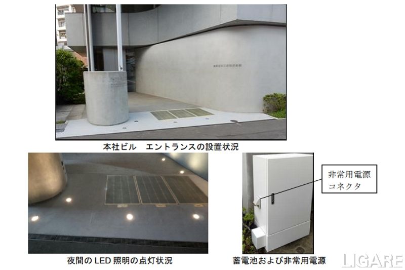 東亜道路工業株式会社(以下、東亜道路工業)は、同社本社ビルのエントランスに太陽光発電舗装システムを7月21日に試験的に設置した。8月20日付のプレスリリースで明かしている。