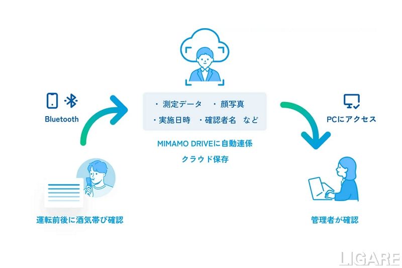 同サービスの特長は、「測定結果の不正やなりすまし防止」、「アルコールチェック未実施者のリアルタイム検知」、「管理業務負担軽減」だ。「測定結果の不正やなりすまし防止」では、アルコール検知器と専用スマートフォンアプリのBluetooth連携により測定結果の不正や誤入力を防止する。また、測定と同時に顔写真を撮影し、その画像を証跡として保存するため、なりすまし防止としても活用できる。
