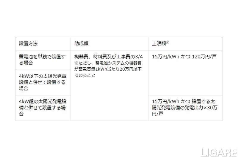 また、今回の助成金では、対象住宅に太陽光発電設備、蓄電池およびV2Hを設置する場合は、追加して補助を行う。リース等で設置する場合も助成対象だ。発電出力が3.6kWまででオール電化住宅であれば、13万円/kWの助成額を39万円/棟を上限として助成する。発電出力が3.6kWまででオール電化以外の住宅であれば、12万円/kWの助成額を36万円/棟を上限として助成する予定だ。さらに、3.6kW超50kW未満のオール電化住宅の場合は、11万円/kWを助成するという。