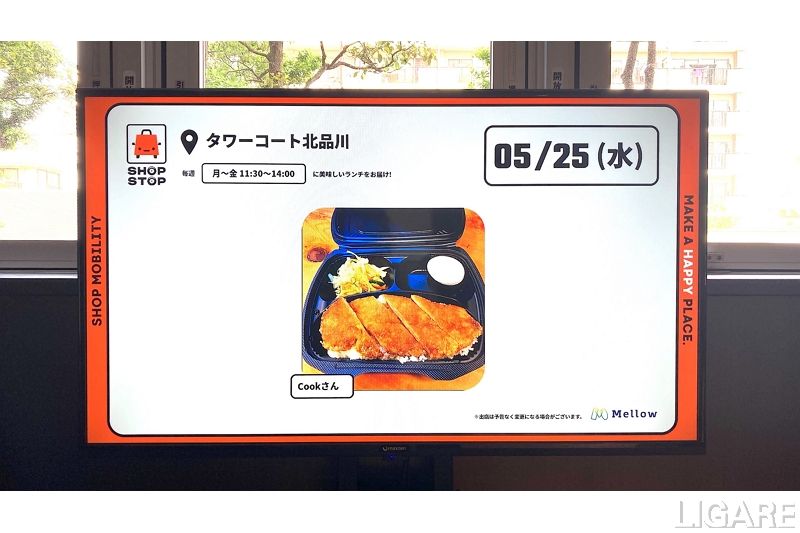 同取り組みでは、「タワーコート北品川」のエレベーター空間に、東京社の提供する「東京エレビGO」とspacemotion株式会社(以下、spacemotion)が展開する「エレシネマ」を共同で設置する。これにより、「タワーコート北品川」の居住者は、エレベーターを利用する際に放映されたさまざまな情報を視聴できるとともに、モビリティーショップの情報を受信することで、食の選択肢の拡充につながる。spacemotionは、東京社と三菱地所株式会社とのジョイントベンチャーだ。