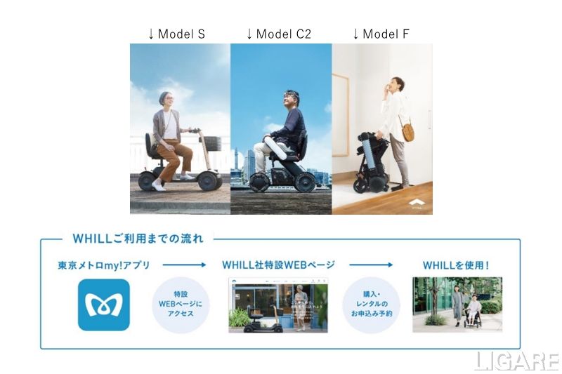 同サービスは、東京メトロの公式アプリ「東京メトロmy!アプリ」から、WHILL社特設Webページにアクセスし、通常よりも安く利用できるというものだ。両社は、同サービスを通じて、長距離の歩行や体力に不安がある人やシニア世代などが、より快適に外出できるようにサポートするという。