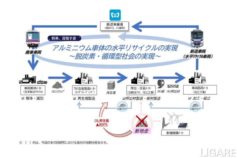 東京地下鉄(以下、東京メトロ)は11月25日、メトロ車両、ホンダトレーディング、日本総合リサイクル、日軽金アクト、住江工業と共同で、半蔵門線8000系車両から半蔵門線18000系車両へのアルミニウム水平リサイクル※実現を発表した。