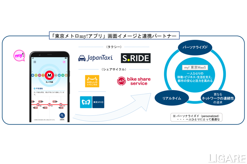 「東京メトロmy!アプリ」公開 タクシー配車・シェアサイクルアプリと連携