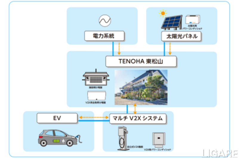 東急不動産株式会社(以下、東急不動産)、株式会社リエネ、エクシオグループ株式会社、オムロン ソーシアルソリューションズ株式会社(以下、オムロン)、東京センチュリー株式会社、株式会社ユー・シー・エルの6社は3月18日、埼玉県東松山市のTENOHA東松山にて「太陽光発電」「電気自動車」「V2X機器」を連動させたエネルギーマネジメントシステム(EMS)構築の実証実施を発表した。