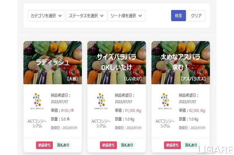 「ジモノミッケ!」は、AiCTコンソーシアム「食・農業ワーキンググループ」活動の一環として、凸版印刷が開発した。2022年7月11日~9月30日に行った実証実験では、会津若松市とその近隣地域から、30の生産者と、宿泊施設、介護施設、飲食店、食品加工業者、小売店など30の実需者が参加している。参加者からは、規格外品の取り扱いや受発注の可視化による「食品ロスの削減」や、地域内流通の最適化と梱包の簡易化による「生産者負担の軽減」に対し、その効果を期待・実感する声を得ており、同サービスの有用性を確認したという。
