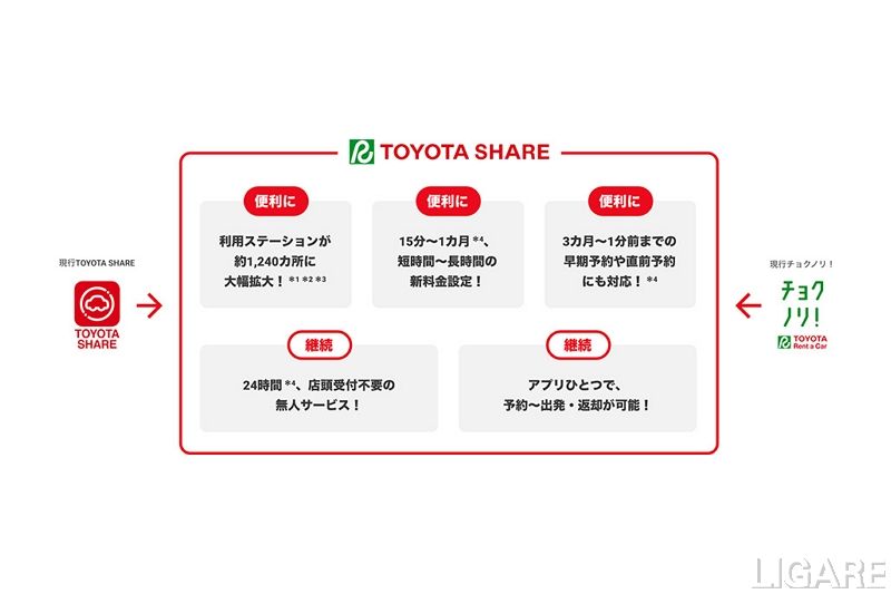 トヨタ、「TOYOTA SHARE」と「チョクノリ!」を統合