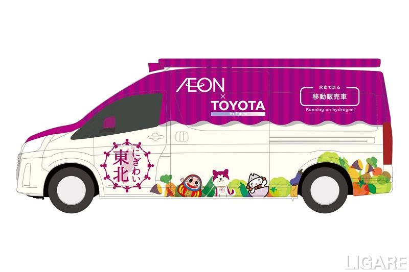 さらに、イオン東北とトヨタは、水素を燃料とした「世界初※」となる燃料電池(FC)移動販売車を双葉町・浪江町に導入する。これにより、水素を利活用した持続可能な未来のまちづくりに貢献する予定だ。