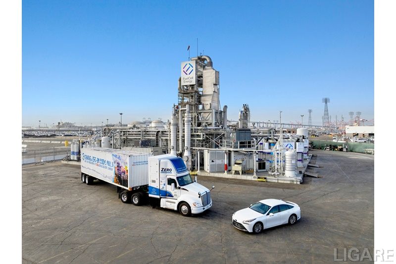 同施設は、カリフォルニア州ロングビーチ港の物流拠点トヨタロジスティクスサービス(以下、TLS)に建設したものだ。燃料電池発電事業を手がけるFuelCell Energy社が運営しており、2.3メガワットの発電が可能な燃料電池(FC)発電所および水素ステーションを併設している。