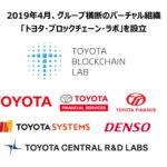 ブロックチェーン技術の可能性を追求すべく、2019年4月にトヨタ自動車、トヨタファイナンシャルサービス、トヨタファイナンス、トヨタシステムズ、デンソー、豊田中央研究所、以上のグループ6社※で構成するバーチャル組織「トヨタ・ブロックチェーン・ラボ」を設立した。将来性の高い用途の企画検討や実証実験の推進を行い、トヨタ・リサーチ・インスティテュート・アドバンスト・デベロップメント(TRI-AD)、トヨタコネクティッド、Toyota Motor North America など、国内外問わずグループ各社との連携、パートナー企業との関係構築も推進している。※構成会社は2020年3月16日時点のもの