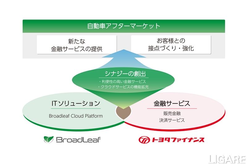 ブロードリーフは、自動車整備業をはじめとする自動車アフターマーケット事業者のネットワークを有している。このネットワークを通じて、自動車販売・整備に関するトヨタファイナンスの金融サービスの提供を実施する。同連携により、ユーザーは、中古車購入や車検・点検時のローンの申し込みができる。