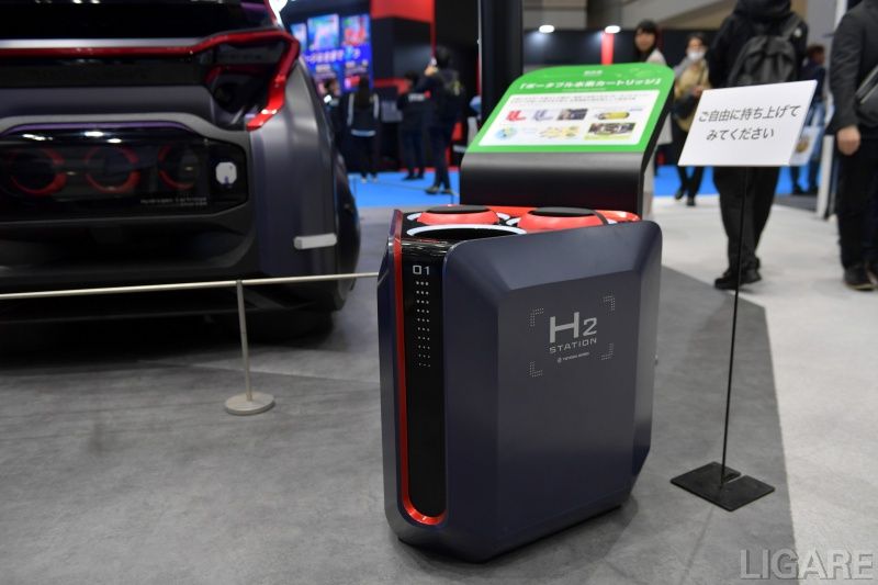水素カートリッジの扱いやすさを補完するため、豊田合成は専用スタンドと水素スクーターも併せて展示した。スタンドは今回、展示用の試作モデルであり、今後は充填機能を備える計画だ。現時点で国内の水素ステーションは限られており、利用環境の整備が課題とされている。こうした背景を踏まえ、持ち運び型カートリッジとスタンドによる充填システムは、充填時間の節約からも注目されるはずだ。