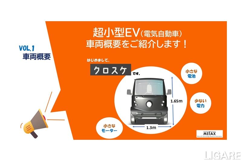 株式会社都筑製作所(以下、都筑製作所)は9月26日、試作中の超小型EV「Micro Utility Vehicle(クロスケ)」の概要を発表した。クロスケは、同社らが2022年10月に設立した超小型EV技術研究組合(以下、METAx)が開発しているものだ。