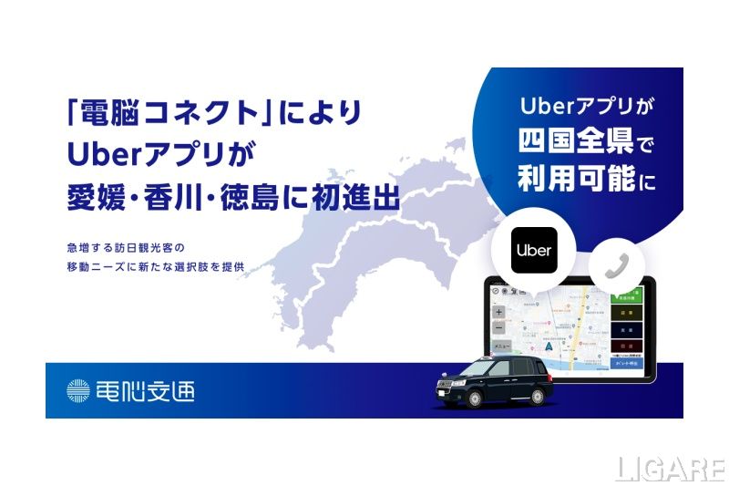 電脳交通は6月17日、同社提供連携システム「電脳コネクト」により、タクシー配車アプリ「Uberアプリ」が愛媛県・香川県・徳島県の対象地域で利用可能となったことを発表。これにより、「Uberアプリ」が四国4県すべてで利用できるようになったという。