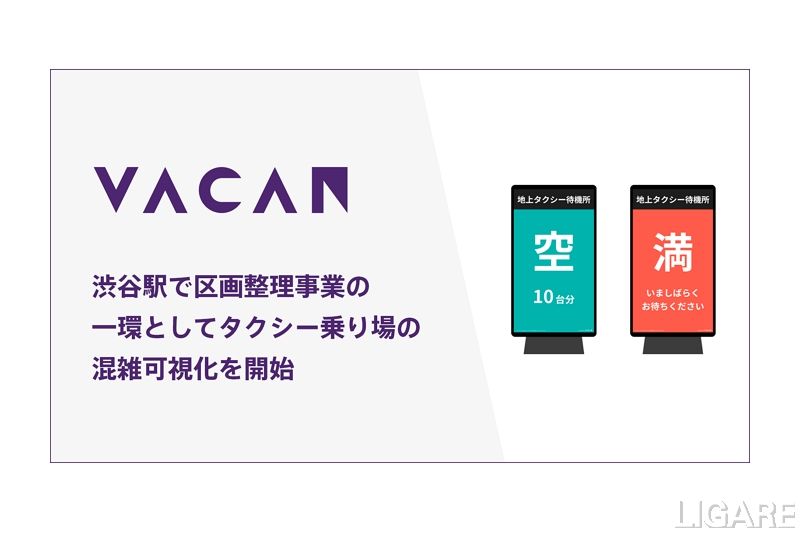 株式会社バカン(以下、バカン)は、渋谷駅西口のタクシー乗り場において、タクシー乗り場および配車待機場所(以下、タクシー乗車エリア)の空き状況を可視化する取り組みを開始する。4月18日付のプレスリリースで明かした。