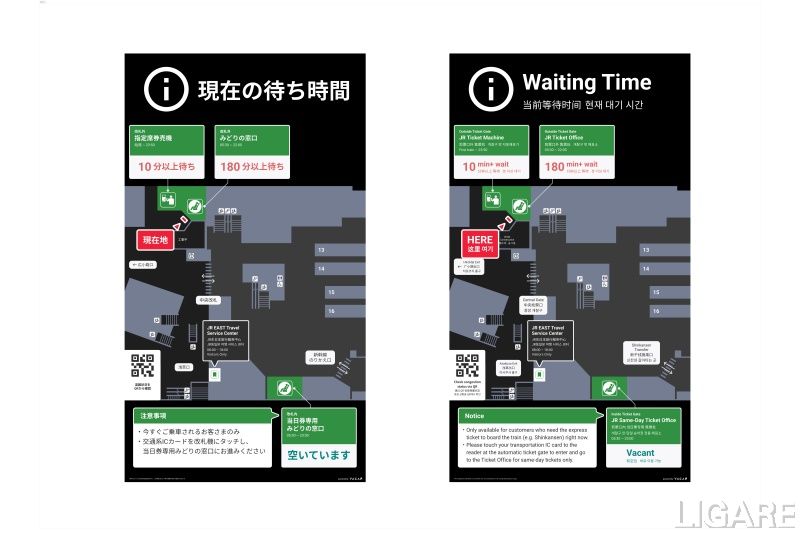 同実証の目的は、「みどりの窓口」(中央改札内外の2箇所)と「指定席券売機」の計3カ所における混雑緩和と待ち時間の短縮だ。これにより、駅利用者の利便性と満足度の向上が期待される。