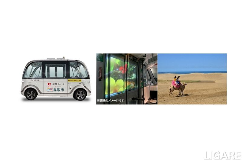 また、実証実験に使用する車両の車窓には、特殊な加工を施した。運行中は、車窓に砂丘や市内観光地の映像を投影する。これにより、単なる移動だけではない付加価値の高い移動体験を提供し、乗ること自体にワクワクするアトラクション自動運転サービスによる受容性向上についても検証する。